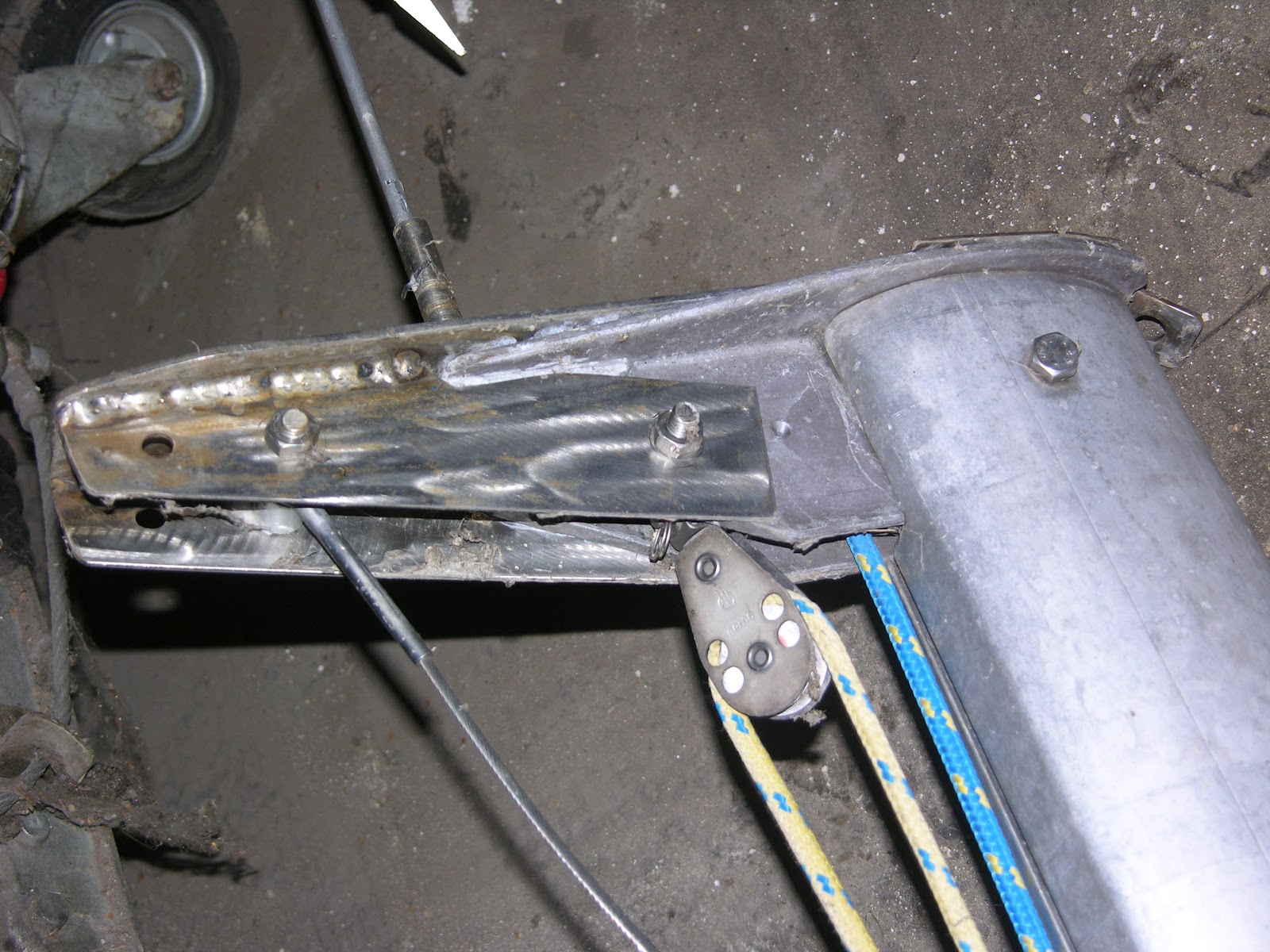 Ho aggiunto due carrucole alla testa in modo da far passare l'amantiglio all'interno dell'albero anziché esternamente.